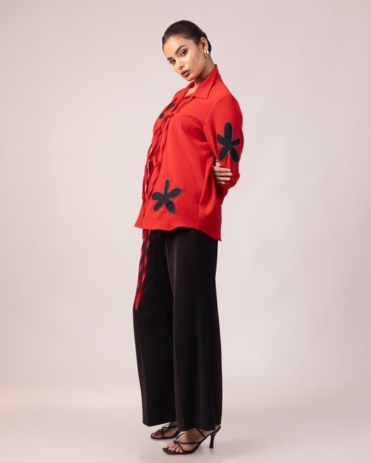 ABBY FLORAL APPLIQUE SHIRT - RED