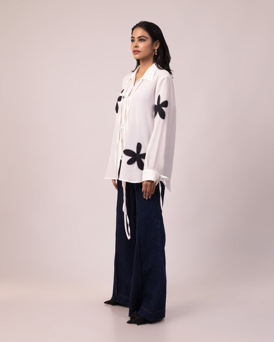 ABBY FLORAL APPLIQUE SHIRT - WHITE